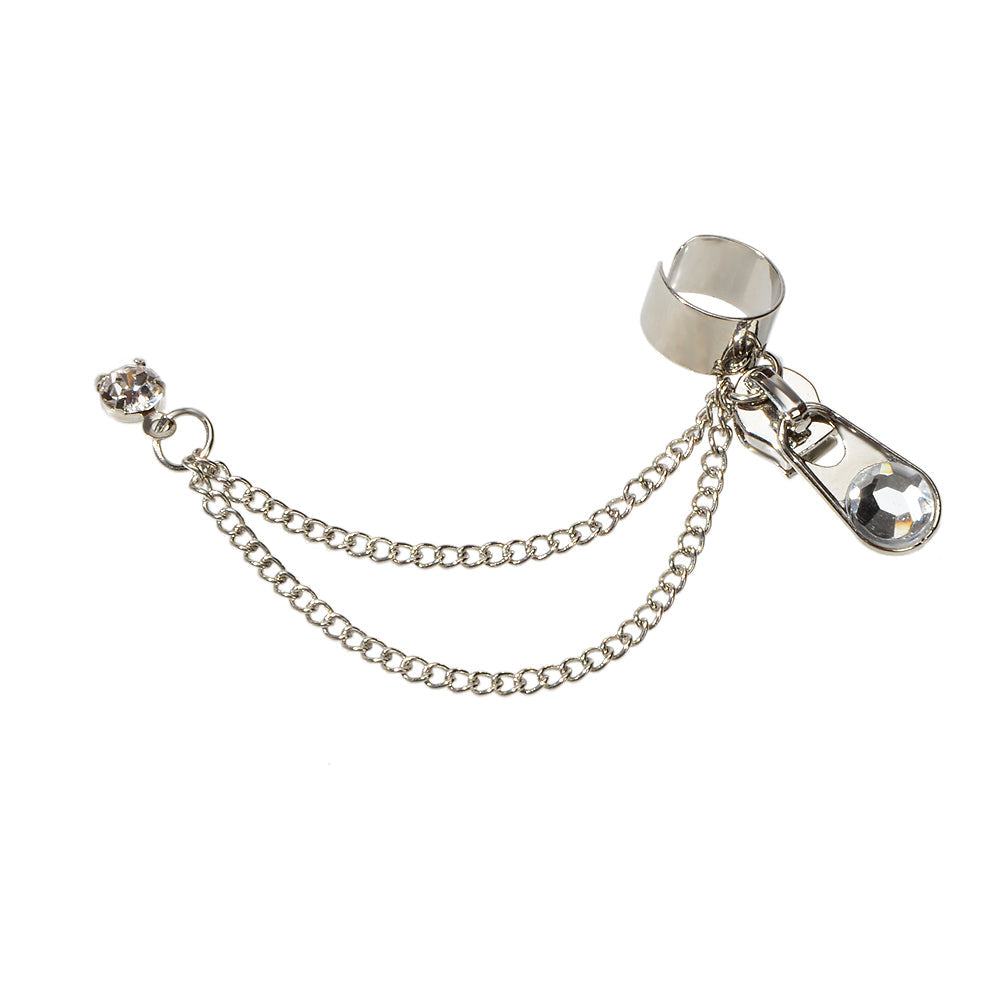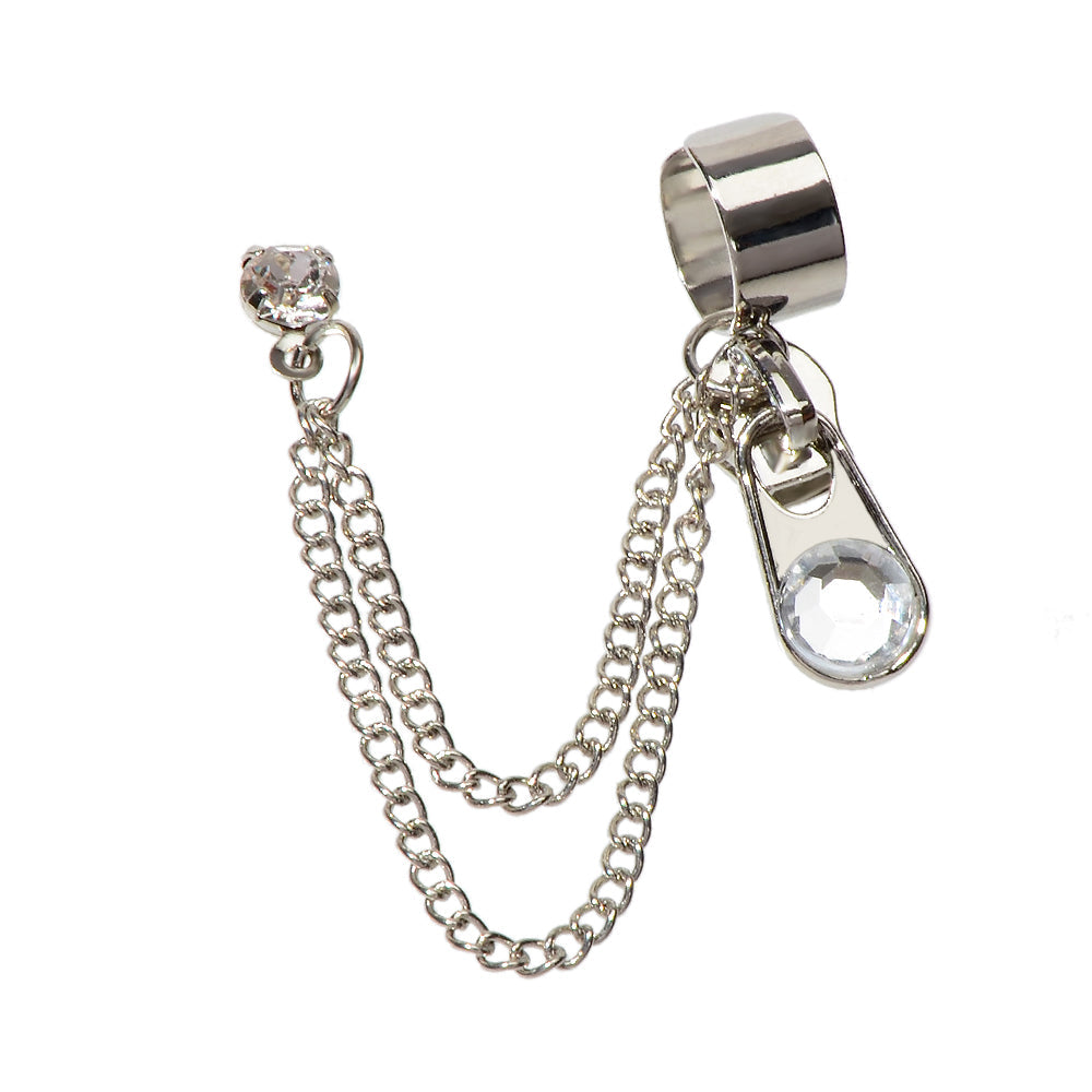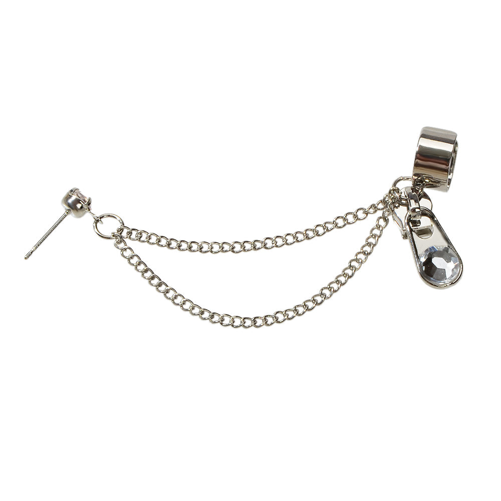 1pc Punk Silver Chain Rhinestone Zipper Shape Stud Cartilage Earrings Ear Cuff