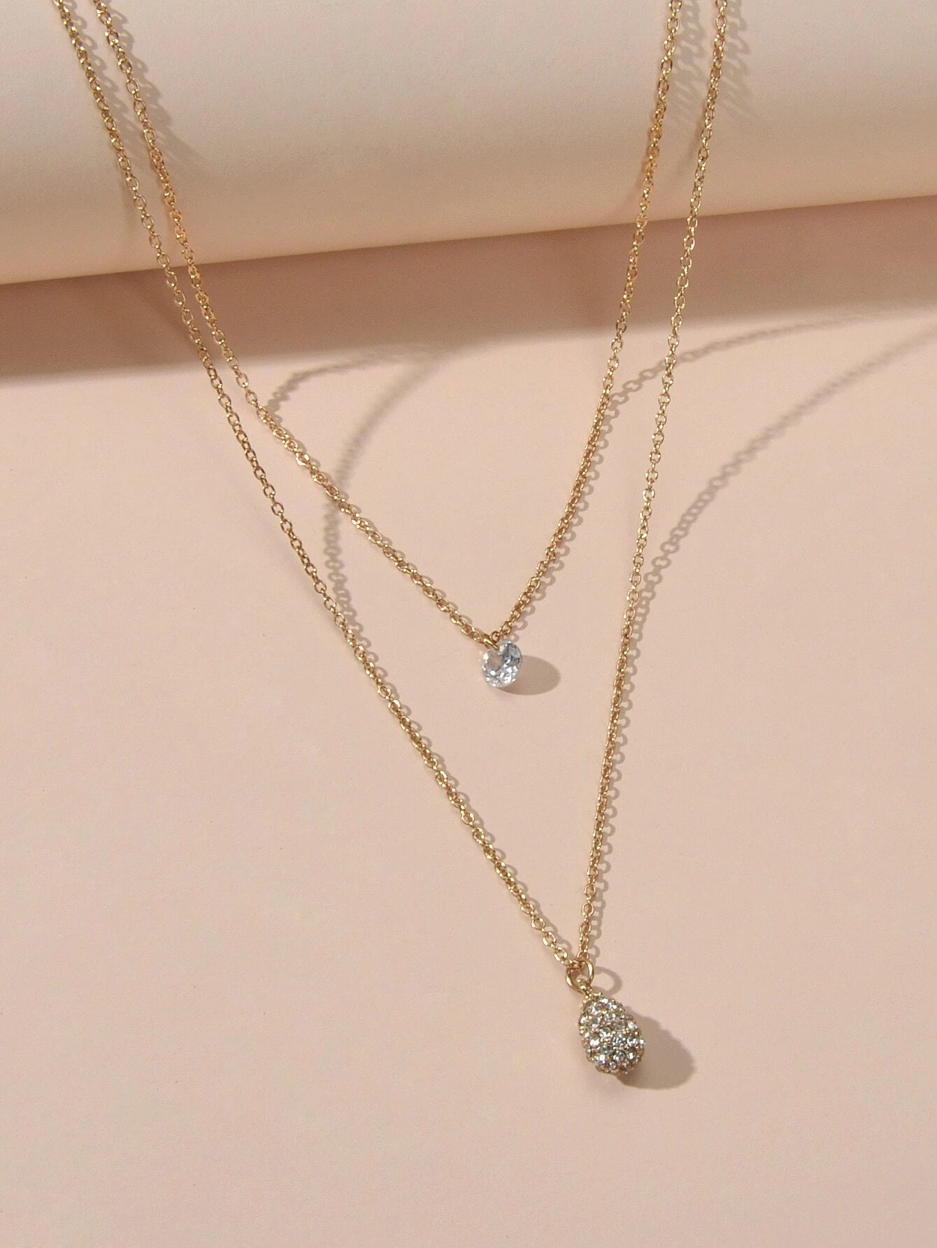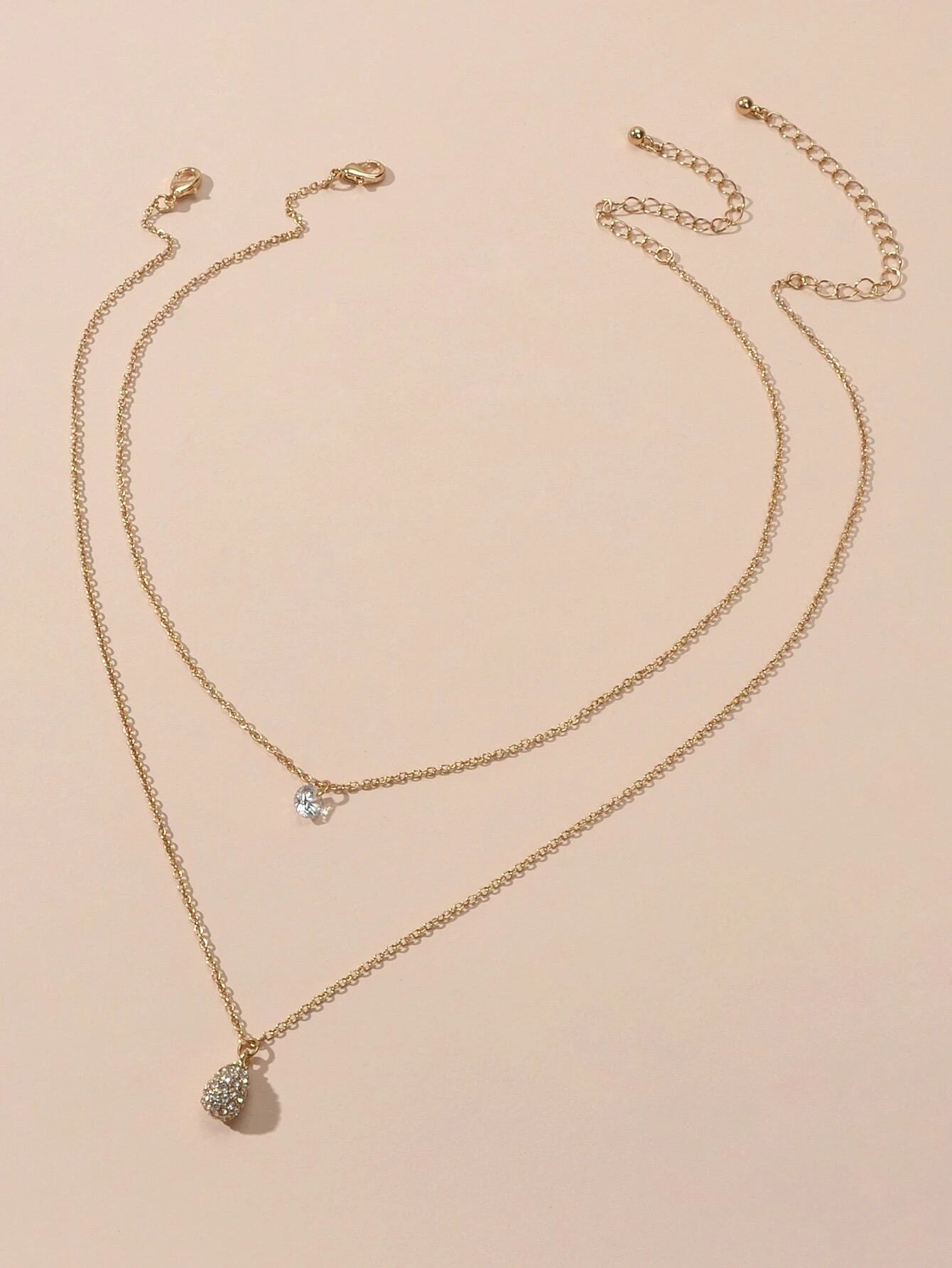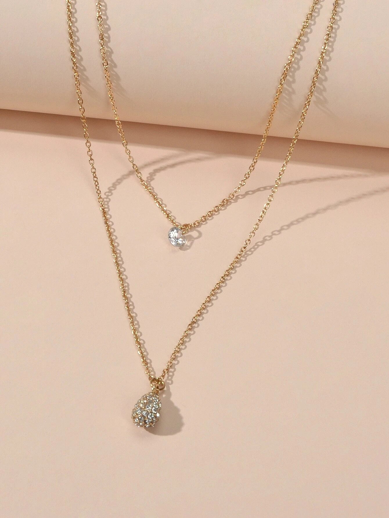 2 pcs Fashion Women Jewellery Rhinestone Decor Gold Chain Water Drop Necklace
