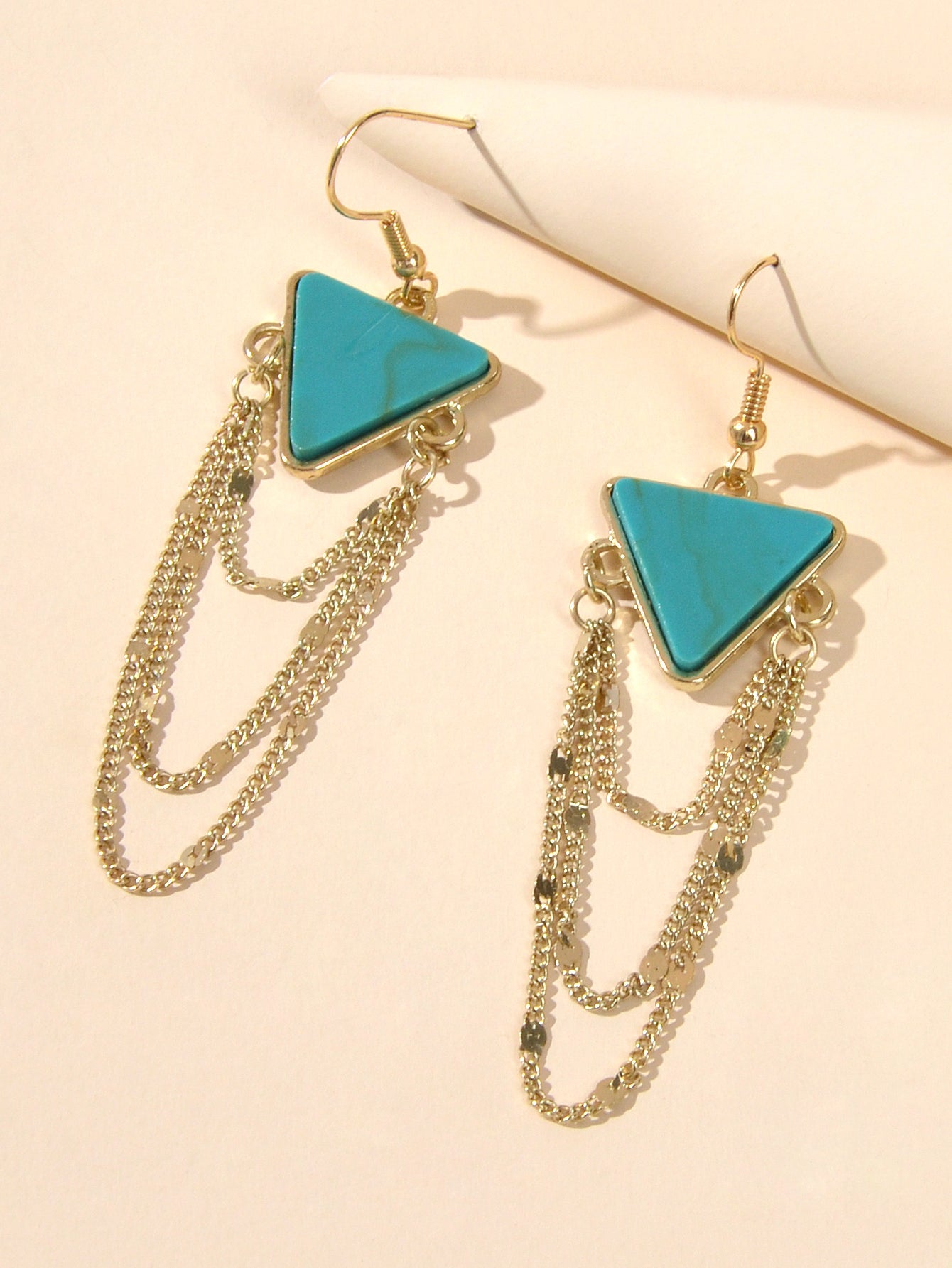 Boho Chic Jewellery Gold Chain Tassel Dangle Turquoise Triangle Ethnic Earrings