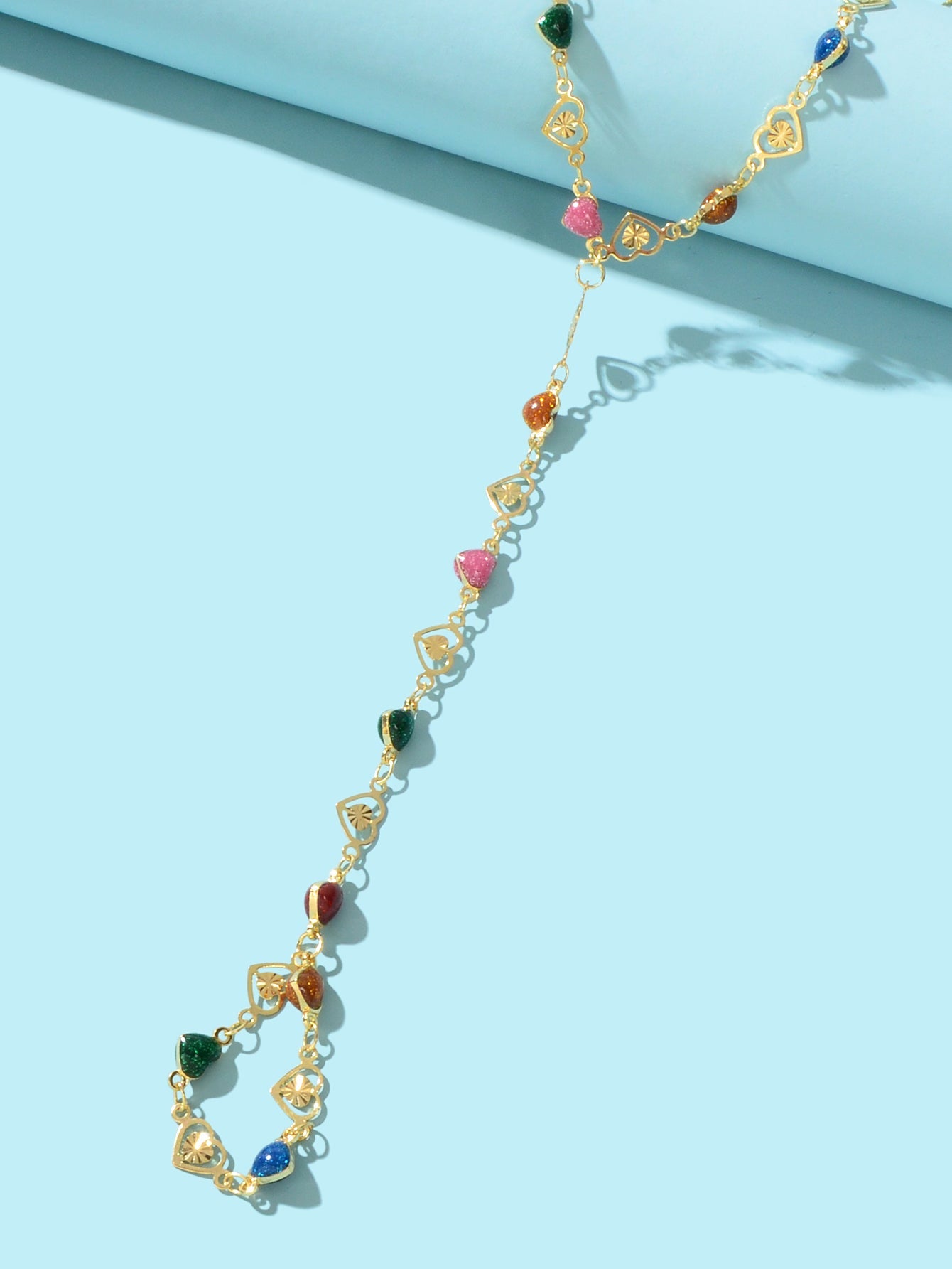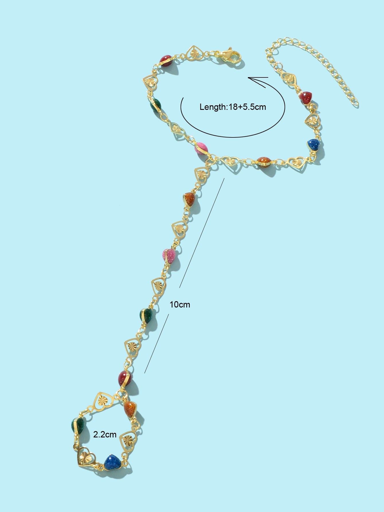 Colorful Heart Gold Chain Ring Wrist Finger Slave Bracelet Bangle Hand Jewellery
